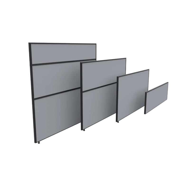 6 - 8 WeeksThe SHUSH30 Screen range features a 30mm slimline screen with a square profile, powder coat frame and a full fabric pinnable surface with adjustable leveling feet. The two heights allow for either full communication or some privacy between users.