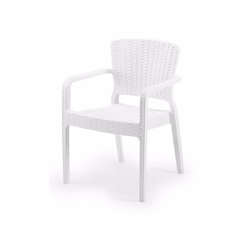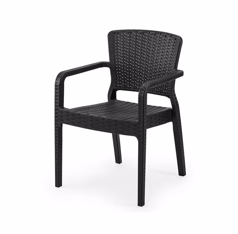 Injection moulded one-piece shell in a decorative rattan design made of polypropylene and reinforced glass fibres.