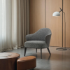 12 - 14 WeeksThe beautifully curved Bao Chair is perfectly sized and perfectly chic. Covered in a stunning textured fabric, with contrasting black steel legs. Romantic flair and pure elegance, style in any environments.