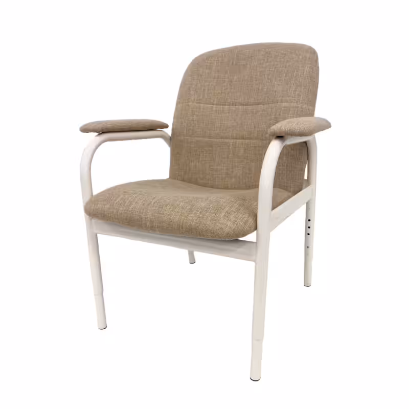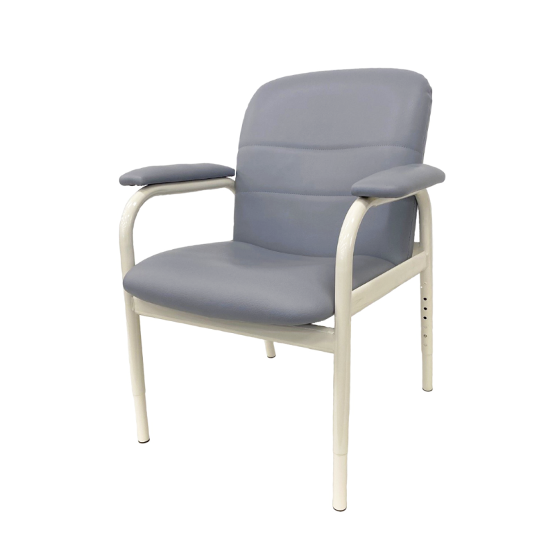 - Fully welded powdercoated tubular steel frame with height adjustable legs with x 6 height levels, standard finish in light beige or wood look finish.