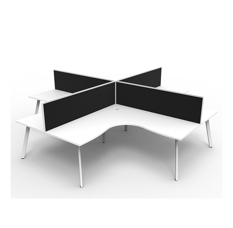 - Scalloped edge to feed wiring to underside of desk on single workstation models.