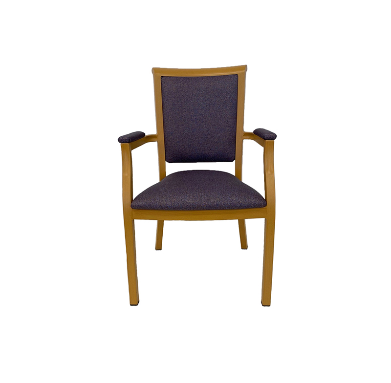 12 - 14 WeeksThe Gala Armchair is extremely durable yet lightweight, featuring an aluminum frame available in powder coat or baked melamine wood look finish.