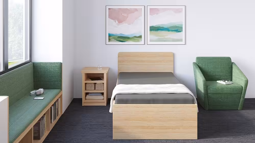 It is is designed to fit seamlessly into a variety of interior settings, including commercial spaces and mental health environments.