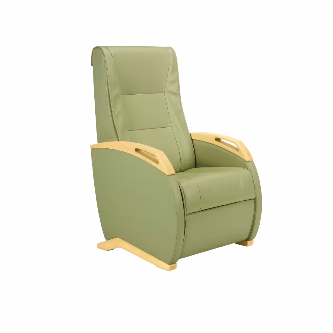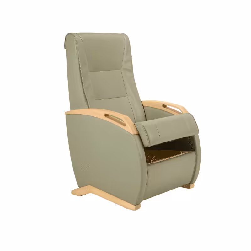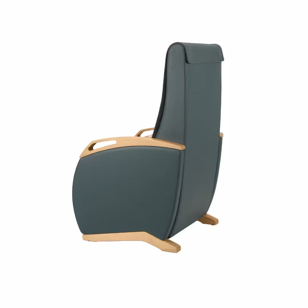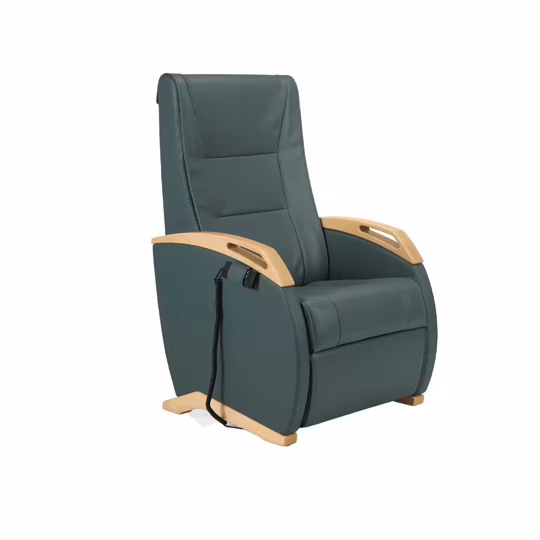 - Featuring a manual or electric recline and lift function, winged back, timber arm detail with added headrest and lumbar support.