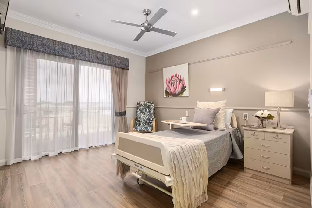Middle Swan Residential Care is Masonic Care WA’s newest 120-bed aged care facility, dedicated to offering expert care and accommodation for older Western Australians in Perth’s eastern metro area. The home features a variety of suites, along with spacious indoor and outdoor areas that offer dynamic views. Each of the 120 suites includes an ensuite bathroom and offers your choice of courtyard or balcony access, or panoramic views, all arranged around a stunning colonnade and private open-air courtyards.